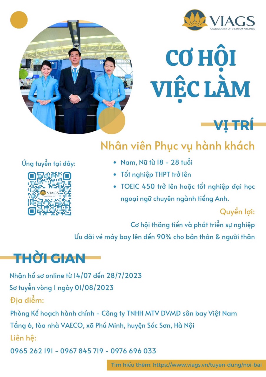 Thông tin chi tiết tại đường dẫn: https://www.viags.vn/tuyen-dung/nhan-vien-phuc-vu-hanh-khach-cac-chuyen-bay-viags-noi-bai
