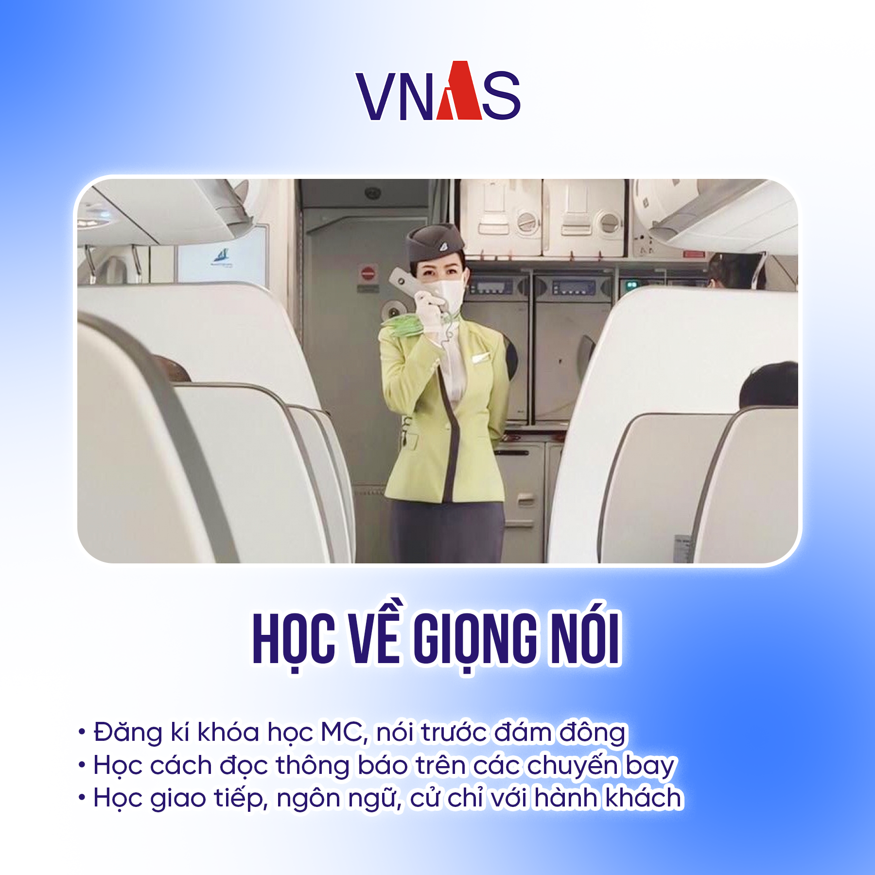 Giọng nói là một trong những yếu tố quyết định sự ấn tượng của một tiếp viên hàng không. Hãy rèn luyện và phát triển giọng nói của bạn để truyền đạt thông điệp một cách rõ ràng, lịch lãm và tự tin.