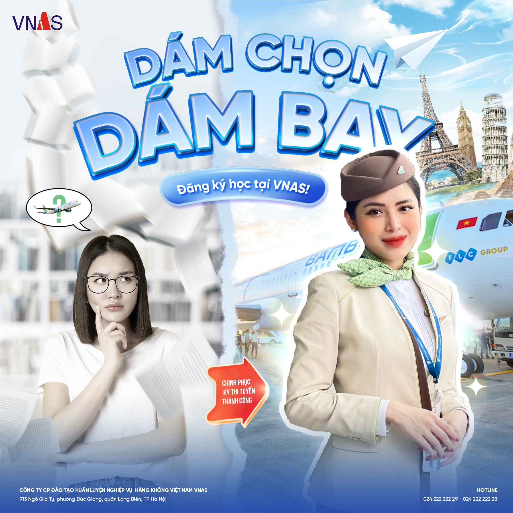 Trường Hàng Không VNAS hiểu rằng ai cũng cần một người đồng hành đáng tin cậy trên hành trình này. Vì thế, chúng tôi ở đây để hỗ trợ bạn từ những bước đầu tiên, từ kiến thức cơ bản đến những kỹ năng cần thiết, giúp bạn tự tin vững bước vào ngành hàng không đầy triển vọng.