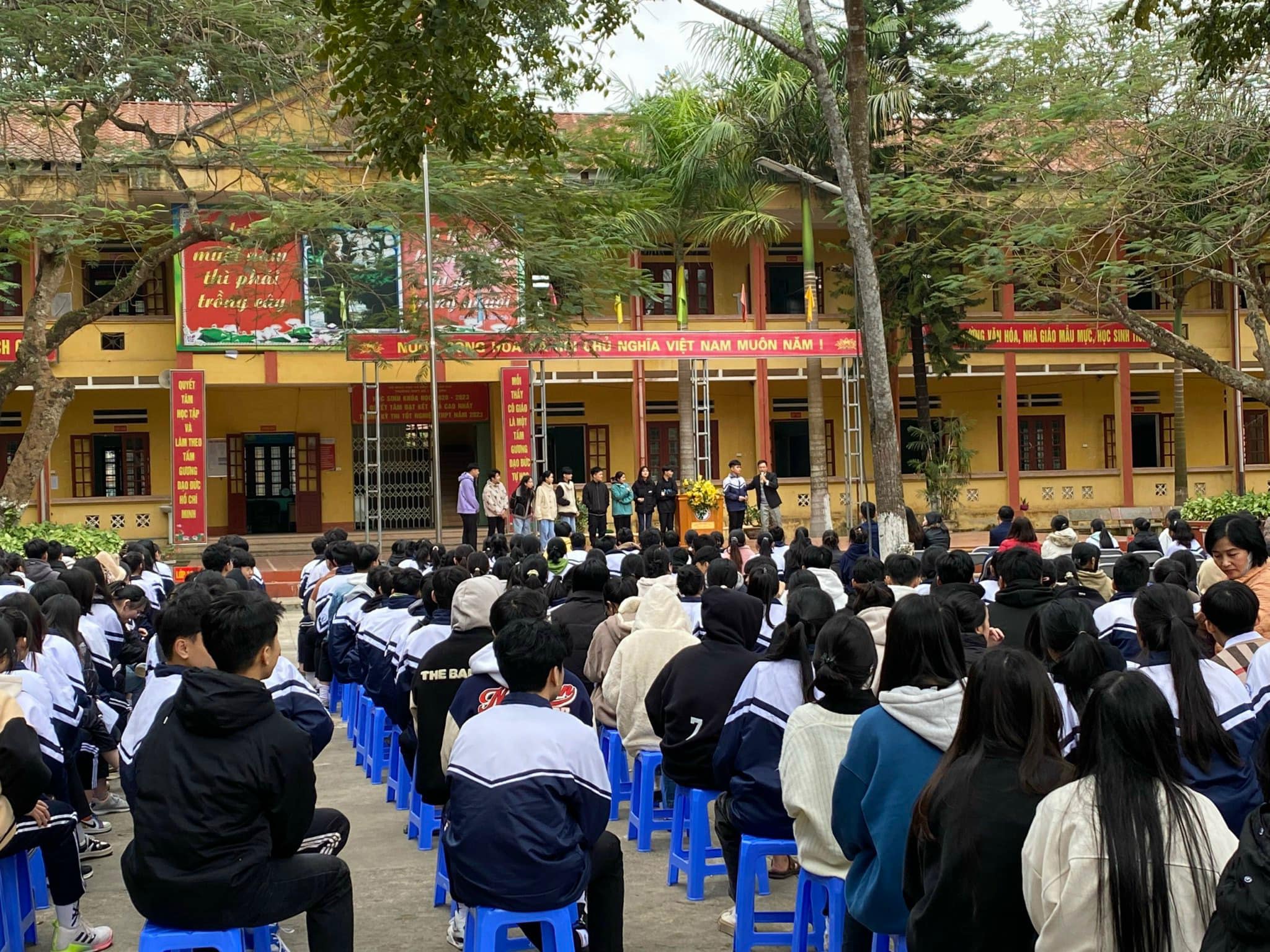 Quang cảnh buổi hướng nghiệp tại trường THPT số 2 Thành Phố Lào Cai.