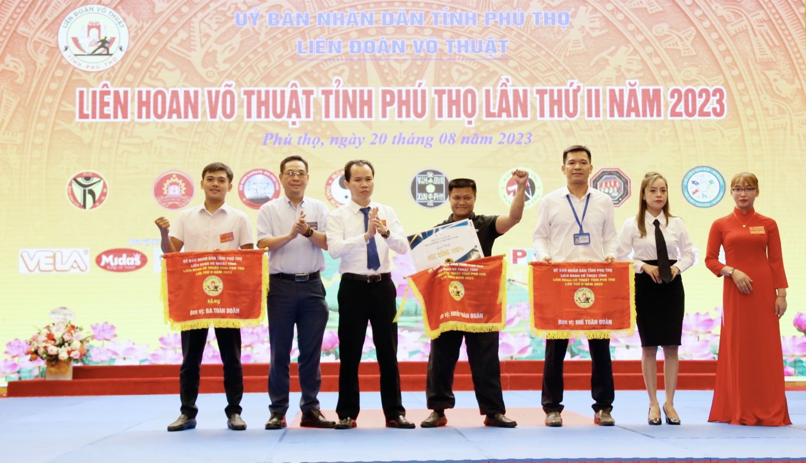 Ban Tổ chức trao giải Nhất, Nhì, Ba toàn đoàn cho các đơn vị, môn phái đạt thành tích cao.