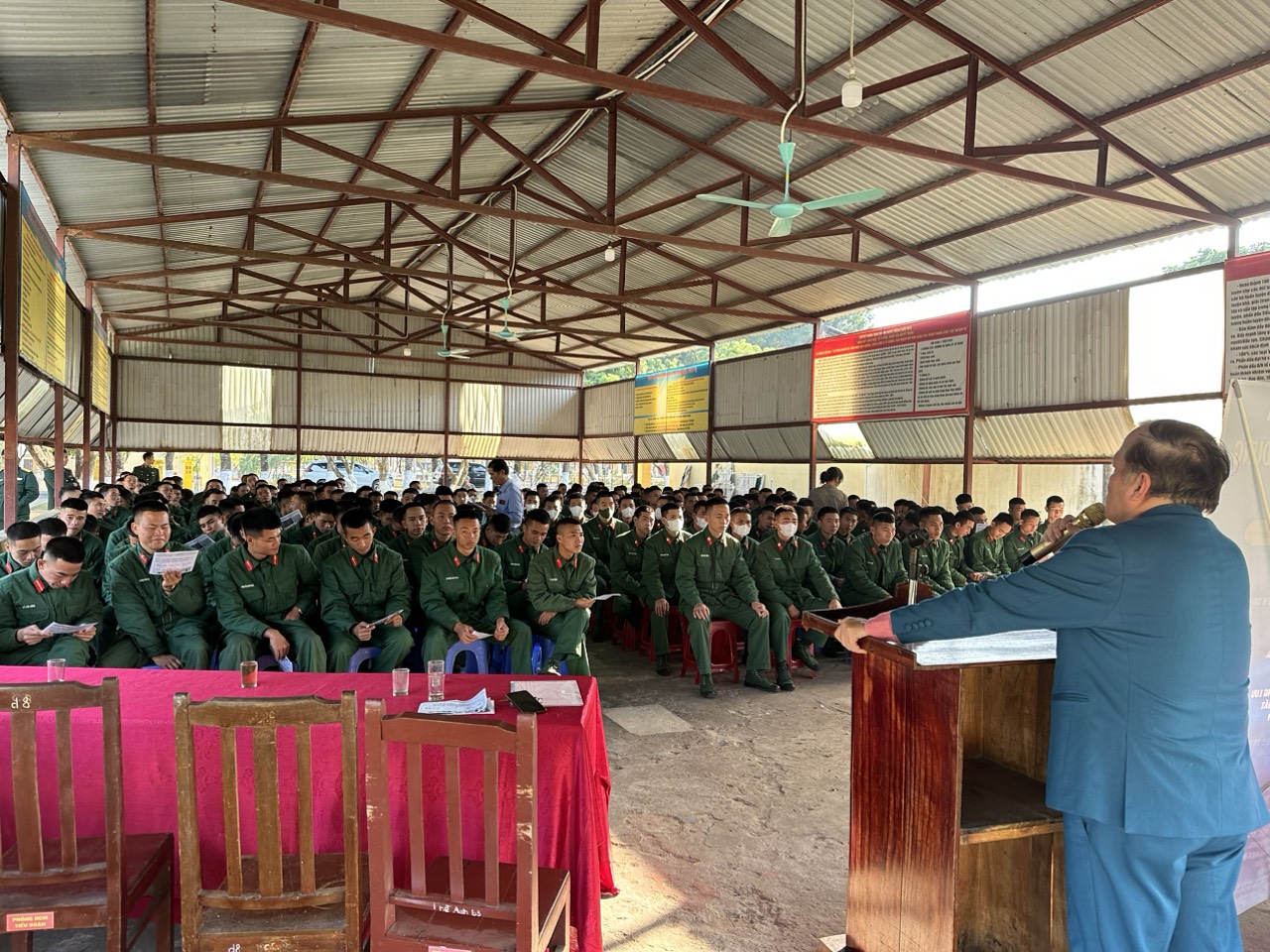 Toàn cảnh buổi giiới thiệu, hướng nghiệp nghề tại Trung đoàn 43.