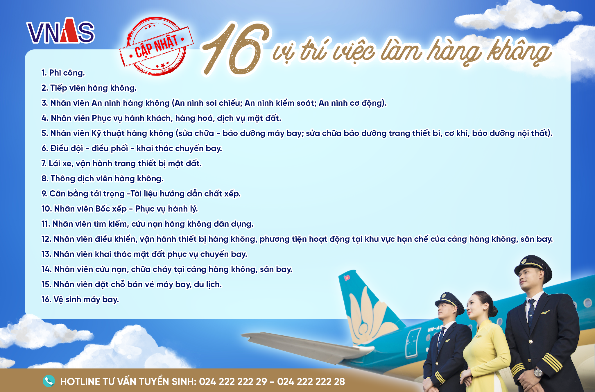 VNAS THÔNG BÁO 16 CHỨC DANH VIỆC LÀM NGÀNH HÀNG KHÔNG TUYỂN SINH ĐÀO TẠO NĂM 2024