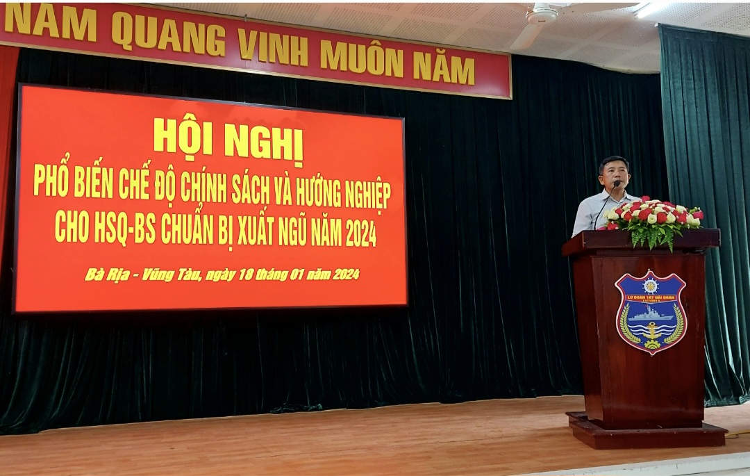 Ngày 18/1, Văn phòng Đại diện VNAS tại Đồng Nai đã phối hợp với Ban chỉ huy Lữ đoàn 167 Hải Quân vùng 2 Bà Rịa, Vũng Tàu tổ chức Hội nghị phổ biến chế độ chính sách và hướng nghiệp cho HSQ – BS chuẩn bị xuất ngũ năm 2024.