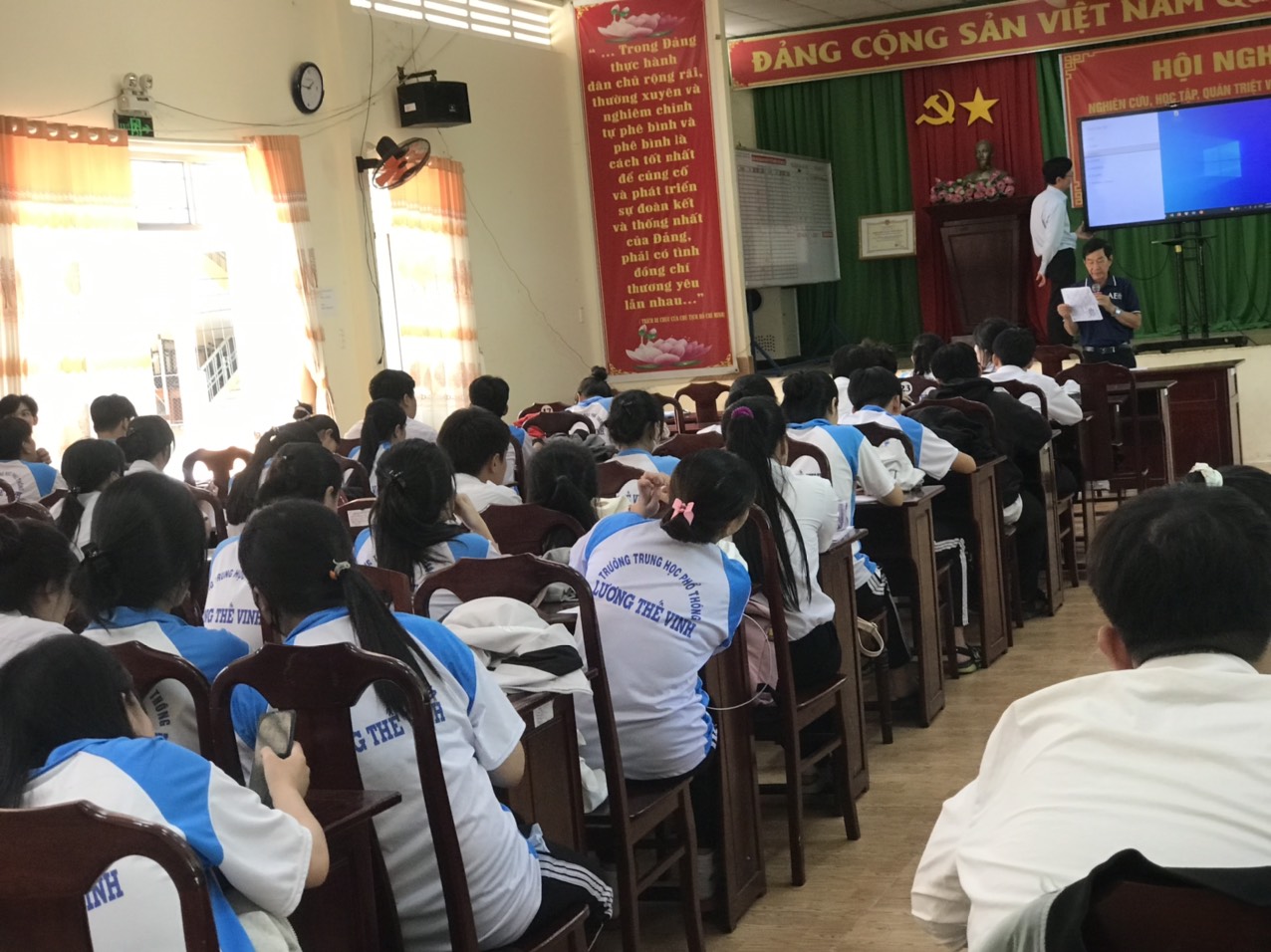 Vừa qua, tại trường THPT Lương Thế Vinh, huyện Phụng Hiệp, Văn phòng Tuyển sinh và Tiếp nhận hồ sơ Hậu Giang đã phối hợp với Ban giám hiệu nhà trường tổ chức chương trình định hướng nghề trong lĩnh vực hàng không cho 290 em học sinh của khối 12.